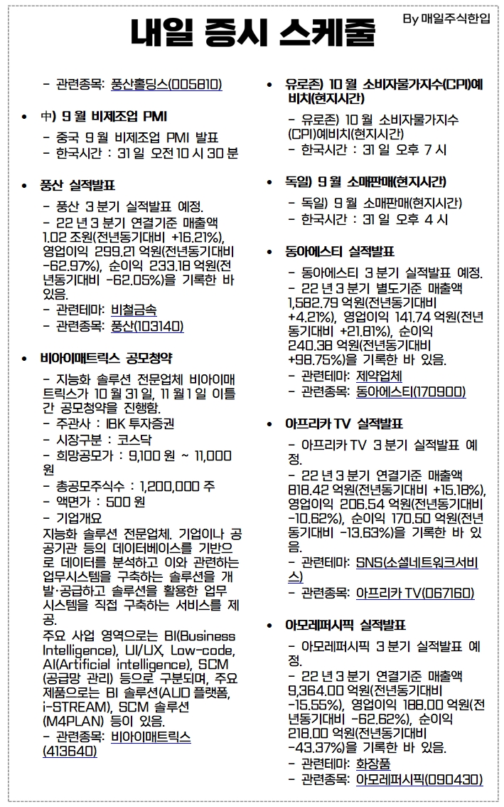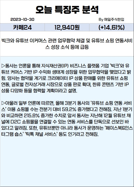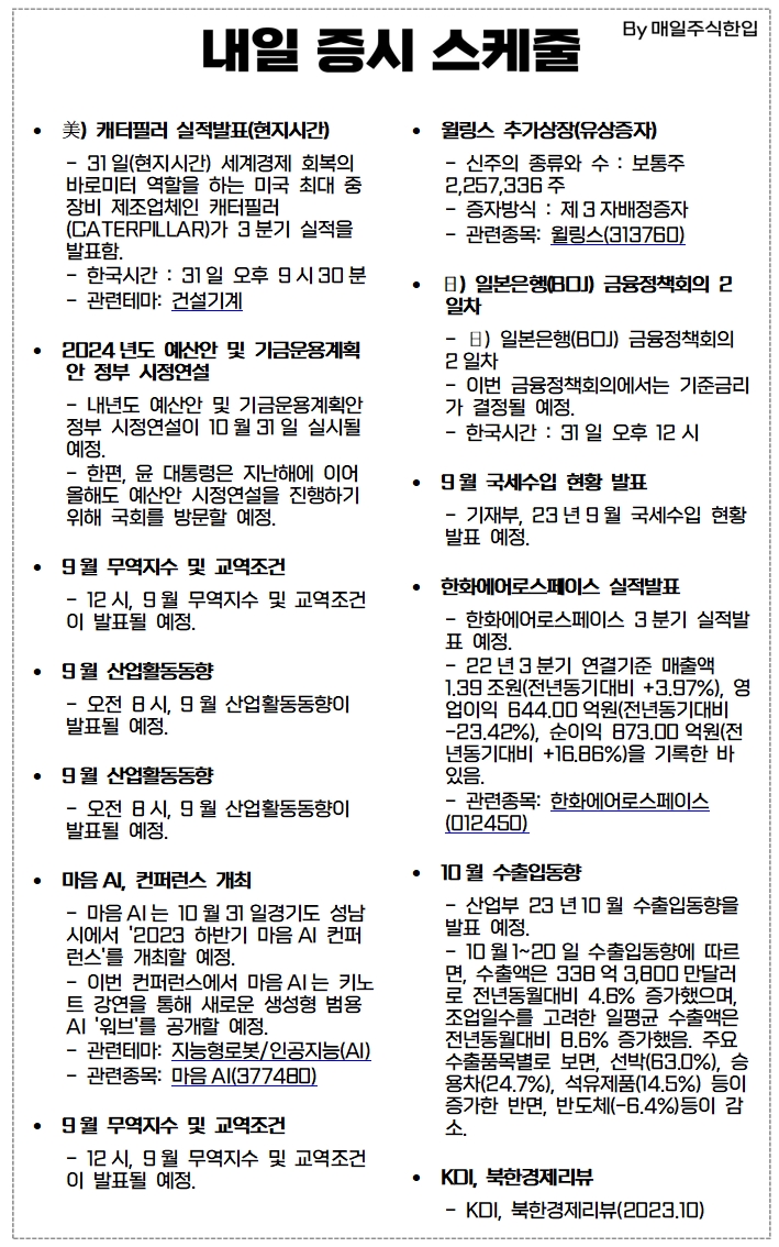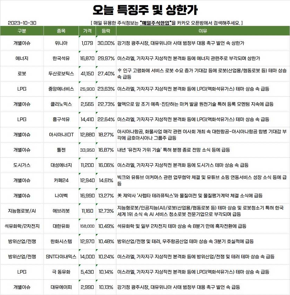 231030 오늘 특징주 및 상한가 / 특징주 분석 / 내일 증시 스케줄카테고리 없음 2023. 10. 30. 18:13반응형
