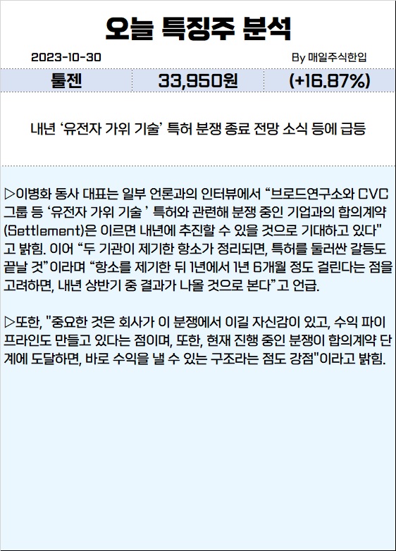 #툴젠 #카페24 #나이벡 #한화시스템 #비츠로셀 #칩스앤미디어